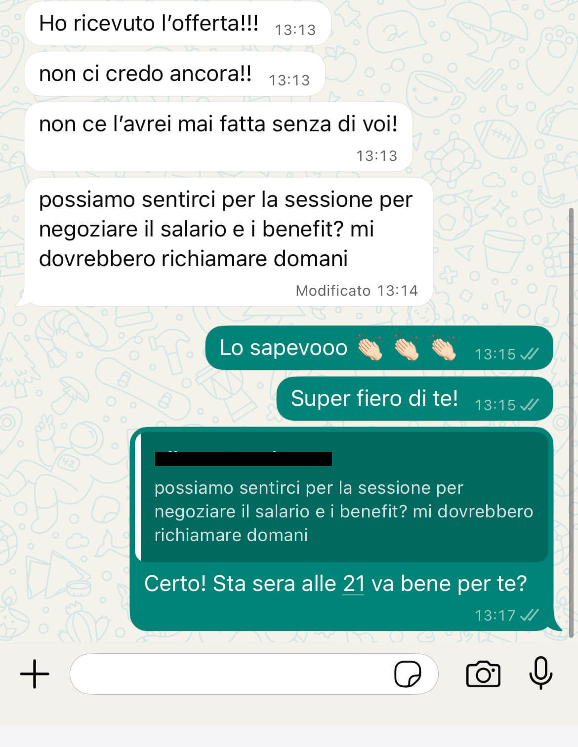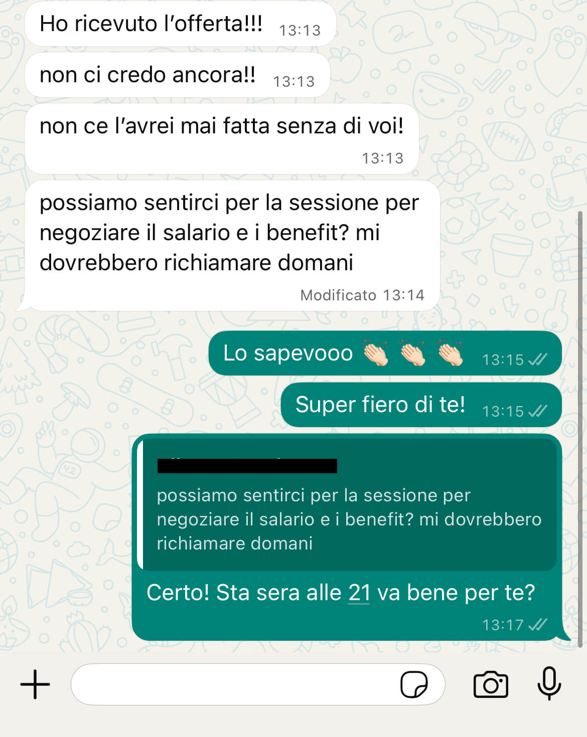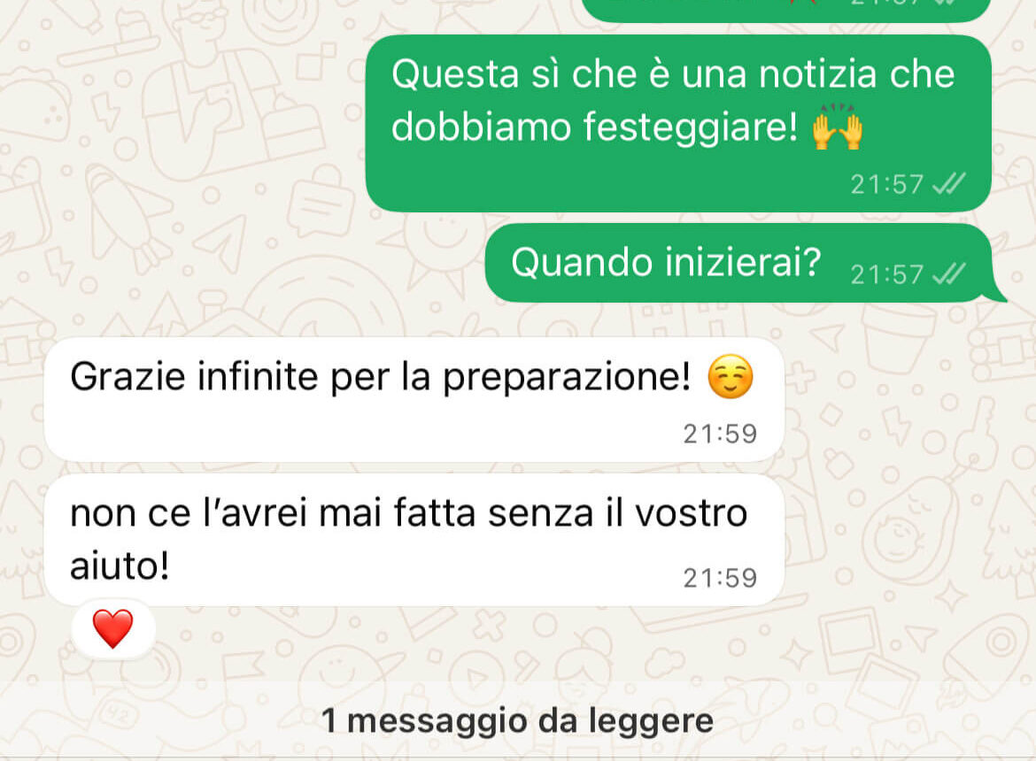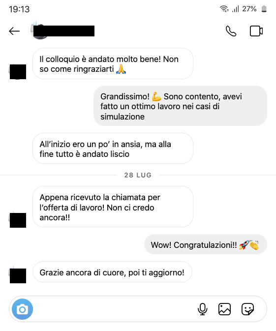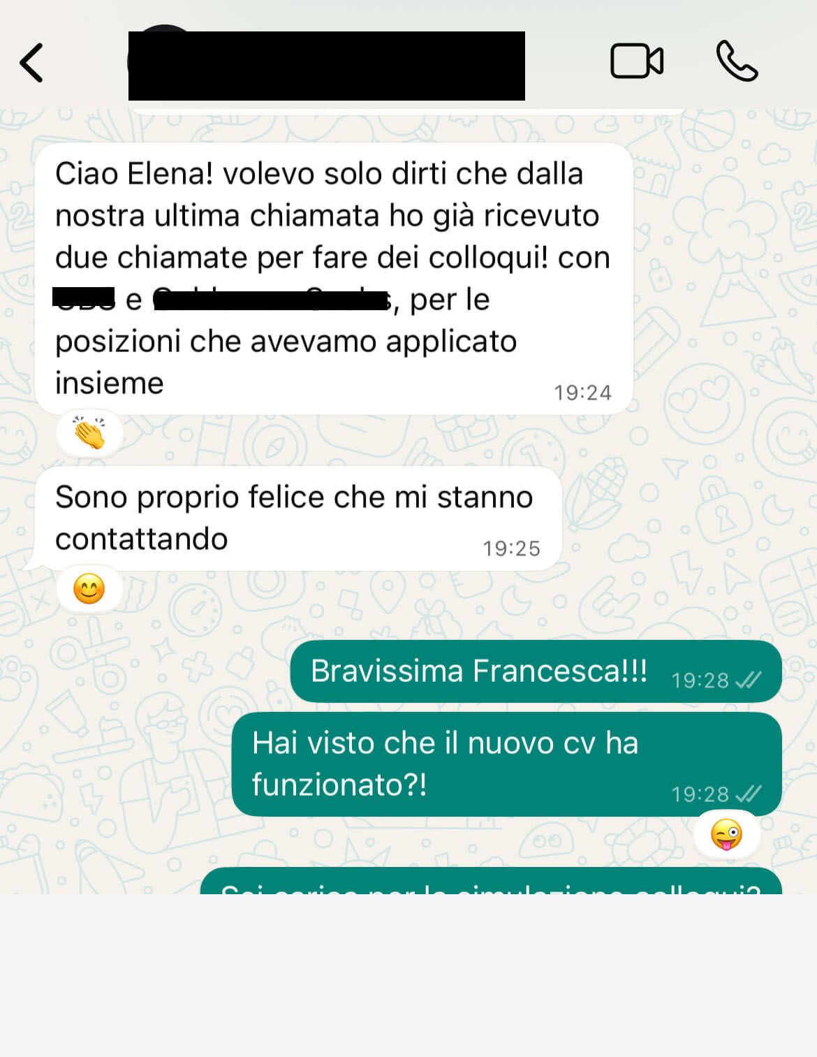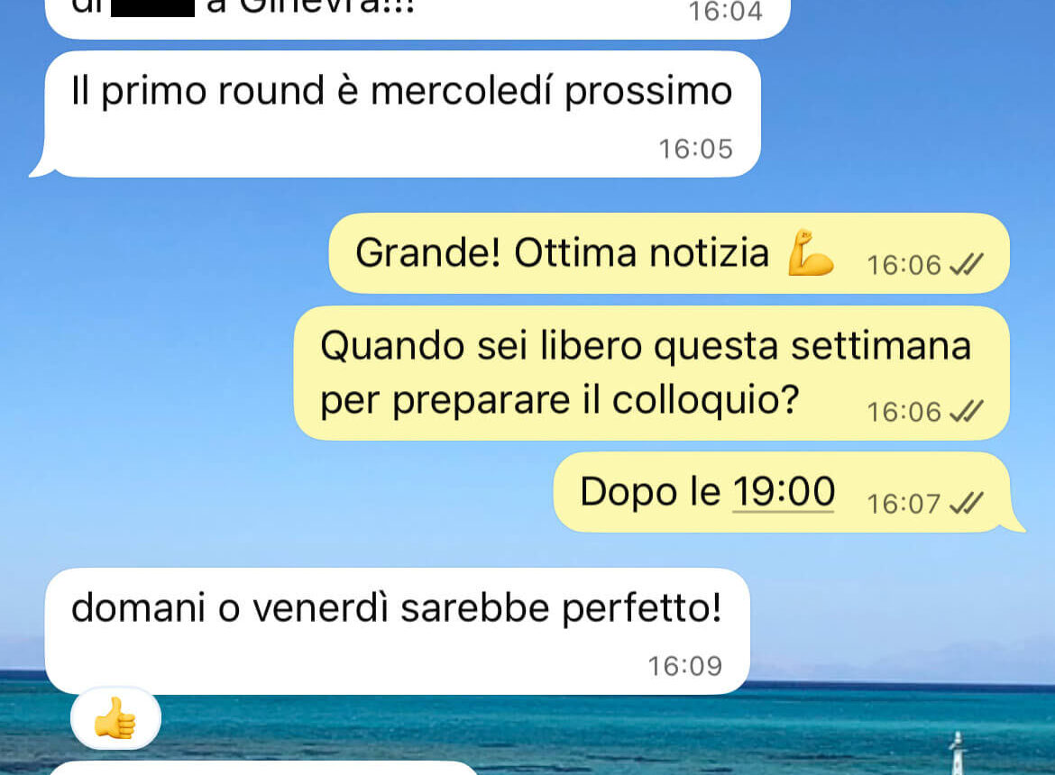 Una chiamata che sarà più utile di mesi di preparazione da solo. Otterrai più consigli pratici di quelli che otterresti da corsi online, libri o piattaforme di preparazione generica.