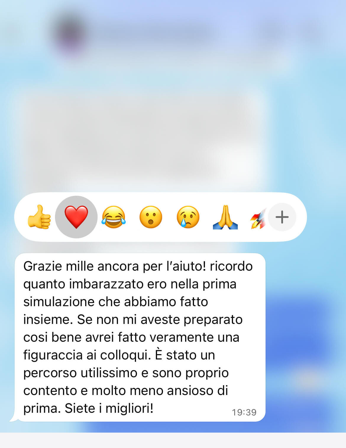 Il nostro percorso si fonda su un metodo collaudato che si adatta al profilo di ogni candidato, ai suoi obiettivi e alla sua preparazione.