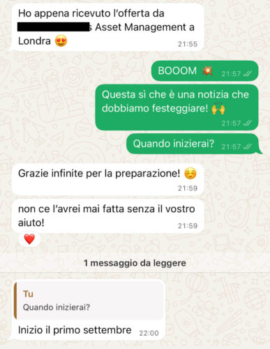 I nostri clienti hanno trovato lavoro in Private Banking, Family Office e Asset Management.
